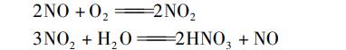 在酯化系统内除了发生生成亚硝酸甲酯的主反应外,还会发生如下副反应生成硝酸,造成废水中含有硝酸。